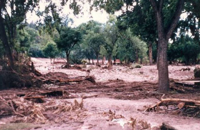 Beautiful Canyon Lake Park looks more like a rock quarry after the flood removed the topsoil. The park once again provides a cool relief for Sunday picnics